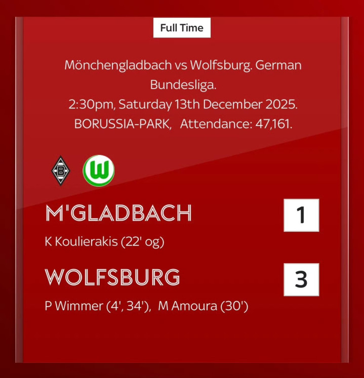 门兴格拉德巴赫 1-3 沃尔夫斯堡