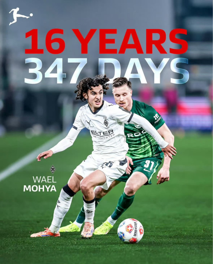 16岁347天 恭喜穆赫亚成为德甲历史上最年轻的门兴球员!!!
