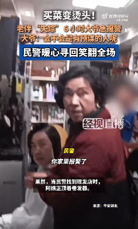 近日,湖北宜昌一位75岁大爷报警称老伴下午出门买菜到晚上8点还没回家,因老伴未带手机联系不上,大爷担心其被坏人带走。民警一边安抚大爷,一边查找公共场所视频同时联系其女儿,其女儿猜测,因临近春节母亲大概率是临时去烫头发了。果不其然,民警在理发店找到了正在烫头发的阿姨。这场持续6小时的“失踪案”最终在满屋笑声中化解。