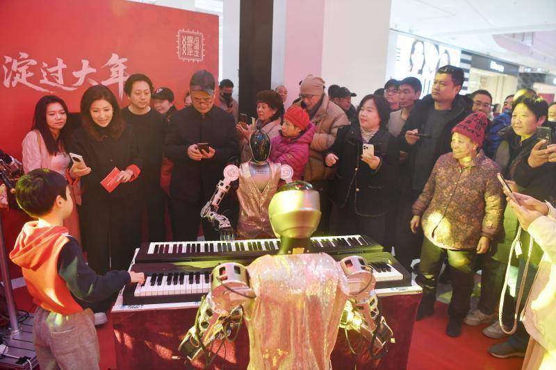 在文化传承与科技创新的碰撞中,本届庙会实现了传统年俗的焕新表达。庙会联动五棵松万达广场1至6层消费场景,布局五大特色展区并免费向公众开放,构建“年俗文化+科技体验+未来生活”三大生态。兔爷机器人畅谈京味年俗、财神机器人巡游送福、AI许愿塔祈福迎好运,让传统年俗更具新意;体感皮影、VR漫游三山五园、曹氏风筝数字工坊等项目,让海淀非遗文脉借助数字科技绽放时代光彩。其中,圆明园马首化身数字小马,以七国语言送福,推动传统文化跨越国界。