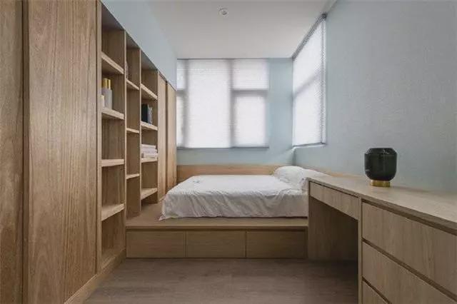卧室用定制榻榻米搭配书桌的设计,不需要太大,但足够温馨。床底位置的一整面柜子股票配资网-独家提供,既可以做衣柜,还可以作为书架使用,一物多用。